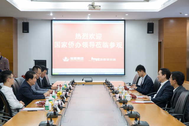 11月13日下午,国务院侨务办公室副主任谭天星、宣传司路君燮处长等一行来访我司海雅缤纷城进行参观,并与我司领导就开展和加快“侨联通”、“中国同胞海外救助基金”等项目的对接工作进行了协调和沟通。集团董事局主席涂辉龙、副总裁涂尔帆、张瑞龙等公司领导陪同接待。
