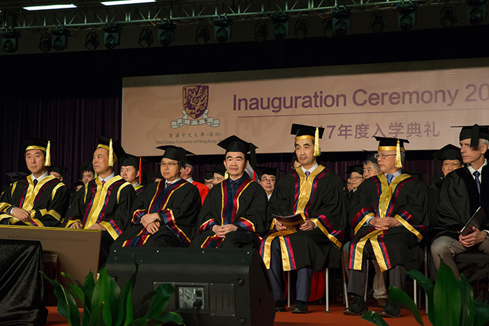 出席开学典礼的嘉宾除了校长徐扬生教授,理事会主席、香港中文大学校长沈祖尧教授,2013年诺贝尔化学奖得主阿里耶•瓦谢尔教授外,还有许多世界知名的学术界大咖,如2012年诺贝尔化学奖得主布莱恩•科比尔卡(Brian K. KOBILKA),美国工程院院士、美国斯坦福大学工学院教授Stephen P. Boyd等。从全球范围内吸引来的众多杰出学者及研究人员,必将会在各自的专业领域内给予入学新生们更全面的教导和指引。