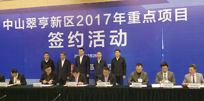 中山市委常委、火炬开发区党工委书记、翠亨新区党工委书记侯奕斌致辞表示,15个重点项目签约完成后,落户新区的企业将突破100家。将逐步形成以中科院系列重大成果转化为代表的产业集群;以清华智能联网无人车、哈工大机器人为代表的高端智能装备产业群;以复旦大学等著名高校拔尖团体科研成果转化为代表的生物医药健康产业集群;以智慧松德、雷诺表业、星光达时尚等项目引领的高端精密及智能可穿戴产业集群,以及以海雅粤港澳创客中心为代表,为世界各地创新型中小企业提供载体的科技产业创新平台集群等五大创新型产业集群,预计总产值将超过500亿元。