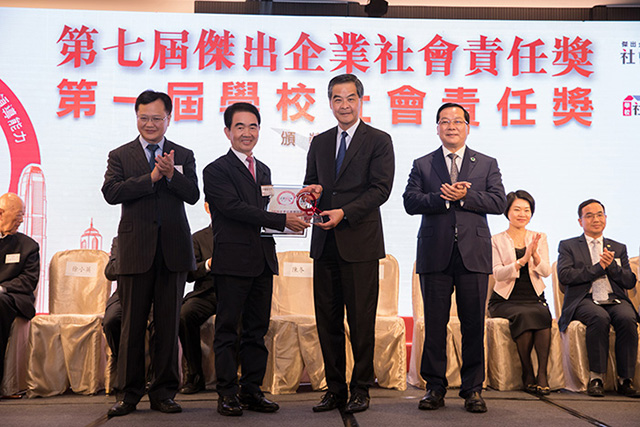 活动现场,梁振英、陈冬及杨润雄为杰出企业家代表、学校代表颁奖,表扬获奖企业在推广社会责任上的贡献。海雅集团董事局主席涂辉龙上台领奖并发表获奖感言,他表示,作为新时代的企业家,不仅要遵纪守法、做强企业,更要为国家经济建设和社会就业作出贡献,勇于承担社会责任。我们将不忘初心,一如既往地服务社会,参与公益慈善。