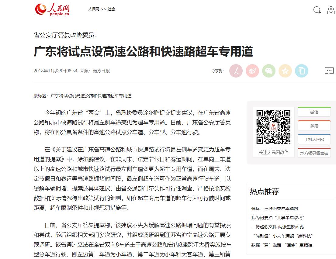 广东省政协委员、海雅集团副总裁涂尔鹏先生在今年的省两会上提交的《关于建议在广东省高速公路和城市快速路试行将最左侧车道变更为超车专用道的提案》,现已被省公安厅采纳并拟选试点。