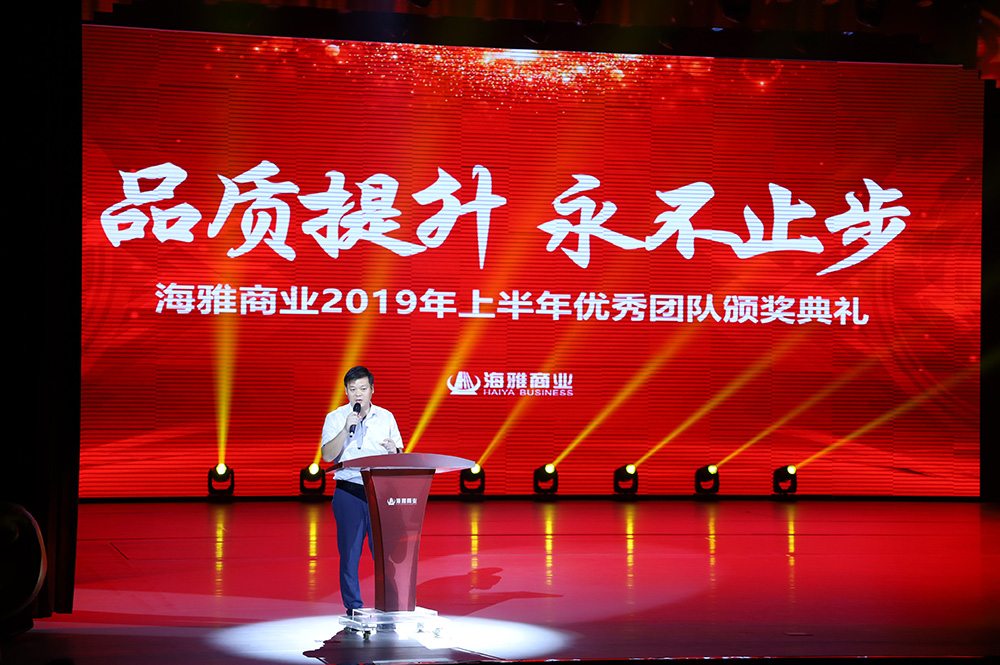 2019年上半年,海雅商业各项目团队经过不断努力与提升,在楼层销售、品牌招商、小程序运营等各方面均取得了优异的成绩。为表彰先进,激励员工,8月8日下午,商业公司在海雅大剧院隆重举行了2019年上半年优秀团队颁奖典礼。