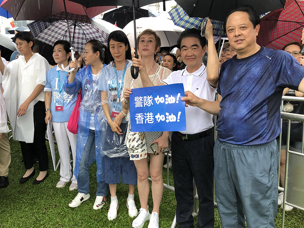 参加集会的市民们表示,没有国哪有家,无论天气多么糟糕,他们也一定要出来发声,反对暴力,支持警方,守护家园。