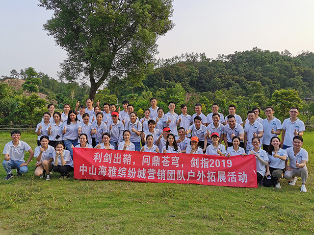 8月7日中山海雅缤纷城营销团队在大尖山露营公园开启了以“利剑出鞘、问鼎苍穹,剑指2019”为主题的户外拓展团建活动。
