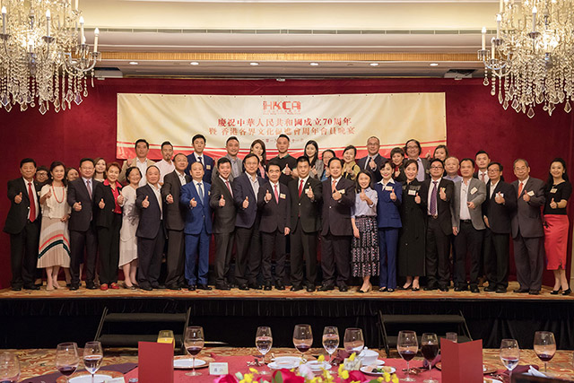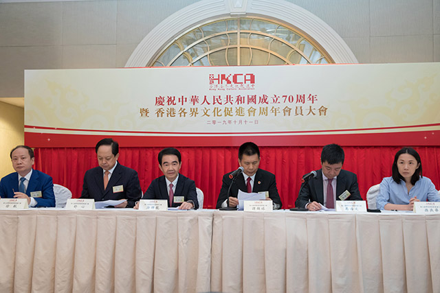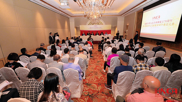 10月11日,香港文促会100多位会员在香港九龙香格里拉酒店举行“庆祝中华人民共和国成立 70 周年香港各界文化促进会周年会员大会及晚宴”。中联办宣传文体部副部长罗江出席会议。