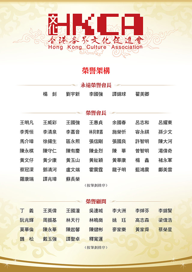 出席当晚活动的本会首长及会员代表还包括,全国政协常委林淑仪、荣誉会长王威彩、李国强、黄华康、杨鑫、邓清河、邝美云、苏长荣;荣誉顾问李锦贤、林鸣岗;常务副主席林振伟、吴联喜、舒陈笑玮、唐安英、马春玲;会务顾问沈平、胡茵;副主席曾庆业、黄湘詅、李晖、徐莉、吴建芳、汪建生、陈晓荣、汪伟文、叶清文、张晓庆、雅舒、余诚谦、陈俊、郭汇昌、苏思灵、潘家隽、张富肇、罗霄、吴献玲、麦宜全;理事朱燕妮、林和伟、邓启忠、朱佩鸿、温锦雄、黄振霆、温立峯、叶友妹、许静怡、谭兆璋、邓伟明、方刘小梅。
