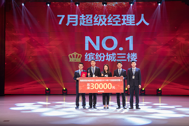随后,东城店总经理于怡揭晓了商业公司2019年8月的超级经理人为海雅南山店七楼团队,并为获奖团队颁发了证书、奖杯与30000元奖金及合影留念。苏总上台为南山店的获奖致辞。苏总讲到:此次荣获奖项,南山店心存感恩;在南山店面对施工围堵、商圈竞争激烈、供应商的合作压力等经营困难时,南山店商管团队没有灰心与消极,仍砥砺前行;在商业总经理尔帆总的指导下,逐渐实现数据化管理,以利润为导向,进行楼层的自主经营;商管全员参与经营,清晰分工,以保姆制管理进行点对点的品牌服务,不断地相互学习、激励进步。随着地铁开通日期的靠近,还需要南山店不断改革升级,不断引进创新的思路和产品,提高精细化管理能力;愿海雅集团不断创造出全新的辉煌篇章。
