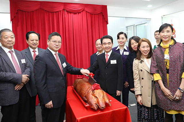 仪式上,涂辉龙主席联同众领导、嘉宾主持了新会所揭牌和切金猪,全场举杯同贺。文促会之后举行午宴,大家欢聚一堂,共庆新岁,并祝愿香港社会早日渡过难关,继续保持繁荣安定。