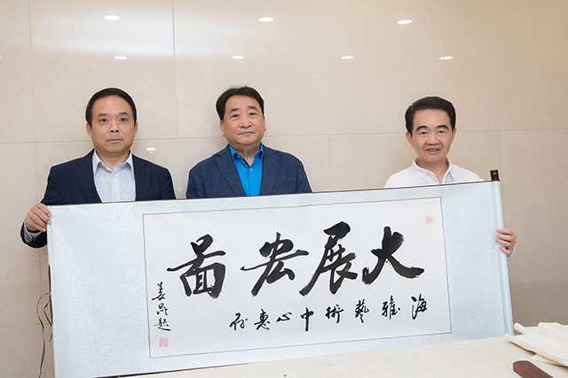 姜昆一行先后参观了海雅缤纷城、海雅大剧院、海雅文化艺术中心等海雅集团旗下产业。随后,姜昆为海雅艺术中心题词,并寄予“大展宏图”之希望。他表示,希望海雅艺术中心继续立足粤港澳大湾区,弘扬中华传统文化,将文化产业做大做强。借以粤港澳大湾区曲艺创新发展联盟落户海雅艺术中心为契机,为粤港澳大湾区人民带来多维度的传统艺术新体验,满足市民日益增长的文化生活需要,为大湾区的文化发展做出更大的贡献。