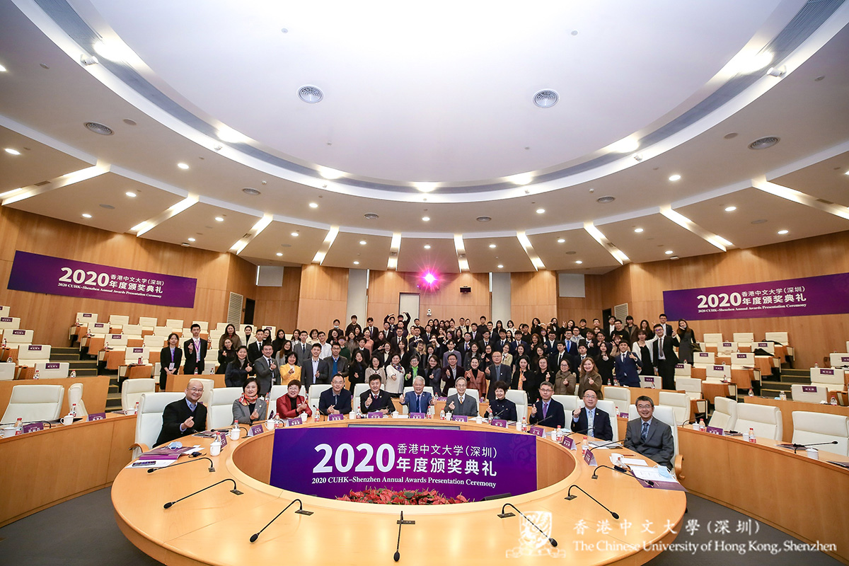 1月15日下午,2020年香港中文大学(深圳)年度颁奖典礼在行政楼西翼隆重举行。香港中文大学(深圳)副校长朱世平,协理副校长李学金、顾阳等校领导,各书院及学院院长以及来自四大书院的学生代表及社会捐赠方代表和受捐赠学生参加了颁奖典礼。海雅集团副总裁张瑞龙作为嘉宾出席本次活动。