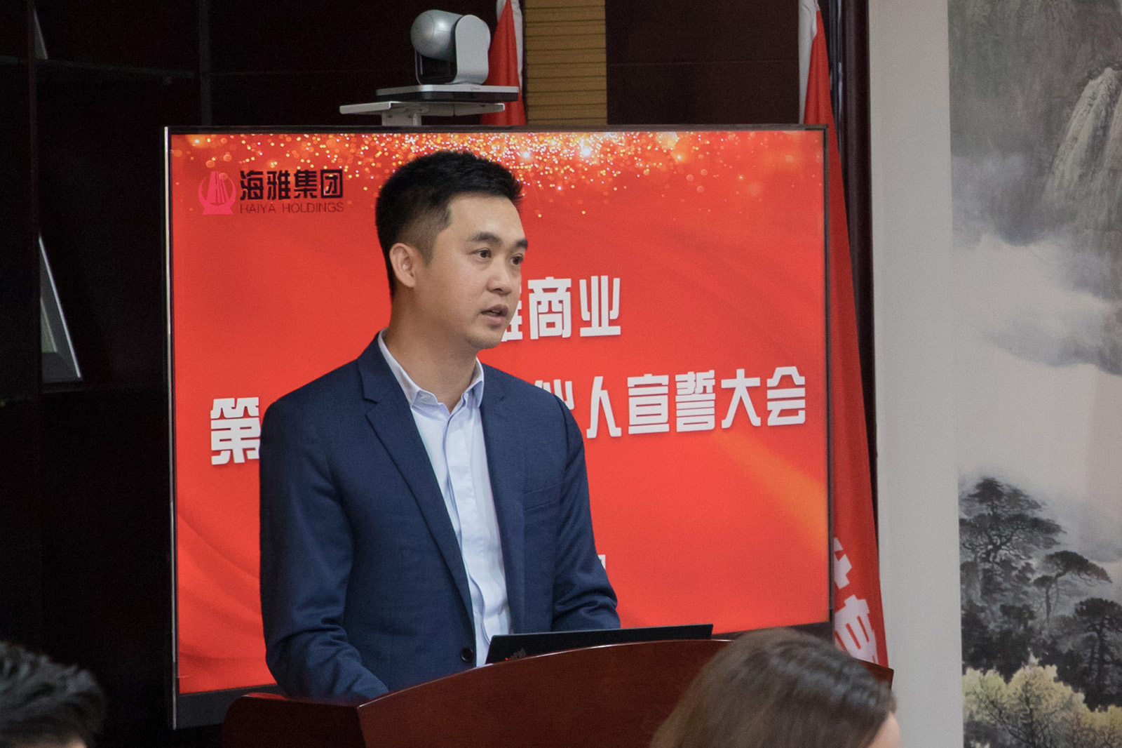 他表示,建设一支团结向上、自我激励的队伍是集团长期以来的愿望;事业合伙人们需在意愿上与集团志同道合,其次在今后的工作上做出表率,从专业能力、组织能力、管理能力等方面着手,做到自身学习常态化,日常管理精细化、机制落实长效化,做一名真正合格的管理者。他还表示,获得海雅商业事业合伙人身份是一份荣耀,更是一份责任。希望在座的各位事业合伙人要秉承海雅精神:真诚合作、惜才如命、居安思危、德才兼备、感恩伟大的时代,共同为树立海雅百年企业品牌做出努力。