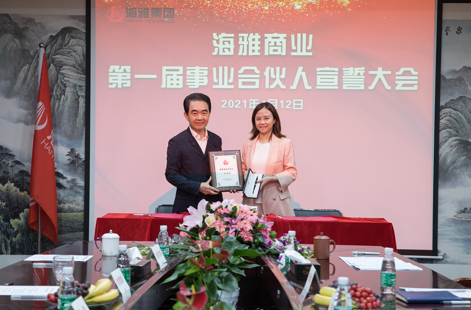 2021年4月12日上午,海雅商业第一届事业合伙人宣誓大会圆满举行。本次共有七名海雅商业经营骨干成为海雅商业事业合伙人,这是海雅商业发展进程中的重大改革,标志着海雅商业从此进入了事业合伙人的时代。海雅集团董事局主席涂辉龙、集团执行总裁涂尔帆、集团副总裁张瑞龙、涂雪明等领导出席本次大会。