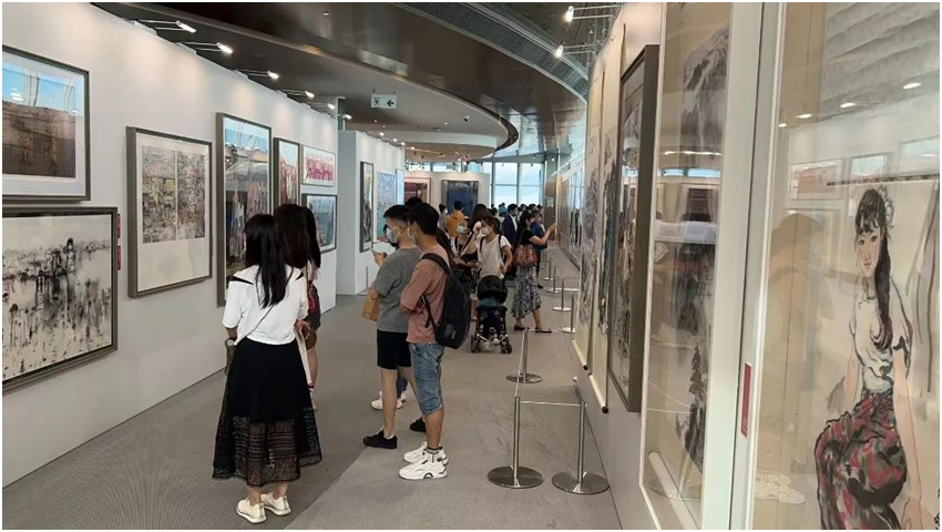 此次展览共计展出70余件艺术精品,包括中国传统笔墨的一代宗师齐白石,中国现代美术教育的推动者刘海粟、林风眠,为中国传统绘画精神吶喊的潘天寿,为革新中国画而不断求索的傅抱石、李可染,岭南画派的创立者高剑父、陈树人,岭南画派的传承者赵少昂、黎雄才、关山月、杨善深,自成一格的文化大家启功,国学泰斗饶宗颐,将中西美学融汇一体的吴冠中等等。除此之外,表现大湾区建设成就的“港珠澳大桥”、狮子山下传统与现代建筑结合的山水、展现百年风云寄语未来香港更美好的全新创作、香港城市的美丽风景、朵朵绽放的紫荆花,这些与港人生活元素密切相关的画作也是本次展览的一大亮点,在展览现场传达出浓浓的港风港味。展览自6月25日预展以来,每天皆有一千余名观众自发观展。不少香港市民携全家前来,手持五星红旗和香港特别行政区区旗,在一幅幅精美画作前合影留念。现场也不乏许多身着校服的青年学生,仔细观赏每一幅作品,并以手机记录下美好时刻。