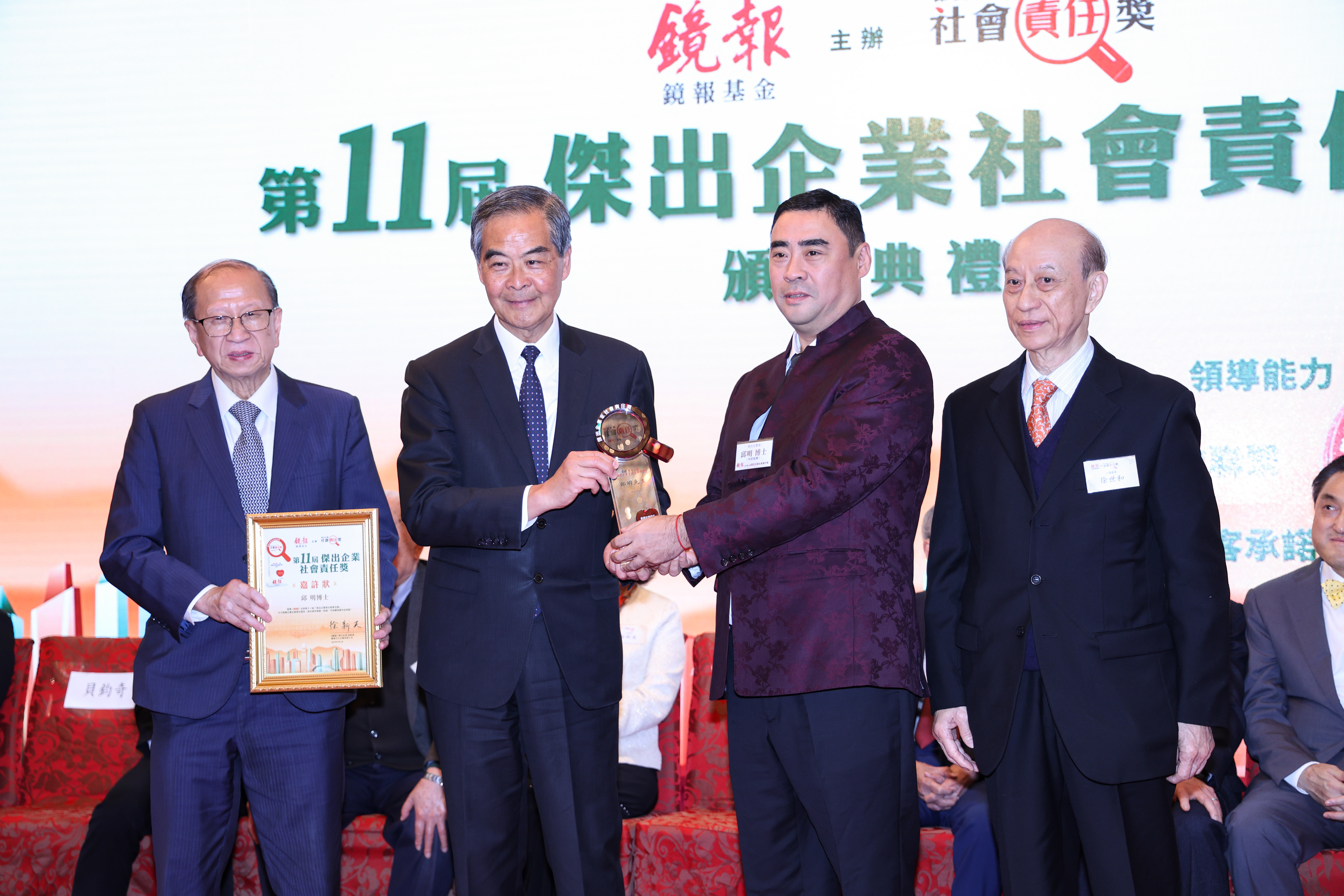 由香港镜报月刊主办的“第十一届杰出企业社会责任奖颁奖典礼”于2025年4月1日假座美丽华酒店18楼宴会厅隆重举行。大会特邀全国政协梁振英副主席莅临主礼并致辞,多位著名企业家、专家、学者共襄盛典。中银国际控股有限公司副董事长林广兆、中联办文体宣传部副部长林枬、珠海市台港澳事务局副局长曾铮、前教育局局长吴克俭、香港中华出入口商会会长贝钧奇、香港电子业商会常务副会长苏永强、香港品牌发展局荣誉主席陈国民、英蓝集团主席于志强、菲律宾威龙集团主席陈祖昌、全国政协委员、香港各界文化促进会主席、海雅集团董事局主席、镜报顾问涂辉龙博士·JP、镜报副董事长徐小英、镜报执行社长徐新英、镜报企业社会责任发展委员会主席徐世和、镜报策划总监吴历山等担任主礼嘉宾。