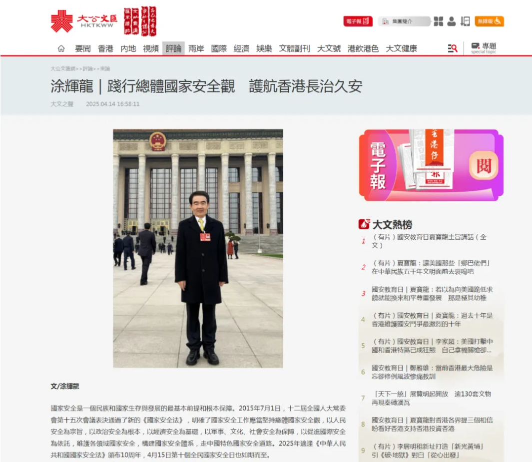 回顾2014年习近平总书记提出的总体国家安全观,不仅为新时代的国家安全工作提供了强大的思想武器,也为包括香港同胞在内的全中国人民明确了共同的责任和义务。在这一战略思想指导下,我国在复杂多变的国际局势中牢牢掌握发展主动权,实现了国家的安全与稳定,也为强国建设、民族复兴奠定了坚实基础。总体国家安全观强调国家安全是一个综合性的概念,涵盖了政治、经济、文化、社会、科技等多个方面。这一理念不仅是对传统国家安全观念的继承和发展,更是针对当代世界面临的各种新挑战提出的全面解决方案。特别是在“一国两制”的框架下,如何在保障香港繁荣稳定的同时维护国家主权、安全和发展利益,成为了实践总体国家安全观的重要课题。2024年,《维护国家安全条例》正式刊宪实施,这是香港特区履行宪制责任、完善国家安全法律体系的重要里程碑。这一重大立法成果标志着香港特别行政区圆满完成基本法第23条规定的立法义务,在“一国两制”方针下构建起维护国家安全的坚实制度屏障。该条例的实施不仅从法治层面筑牢了国家安全防线,更为香港社会长治久安和良政善治提供了坚实保障。实践充分证明,国家安全是香港繁荣稳定的根本前提,唯有在安全稳固的环境中,香港的独特优势和发展潜能才能得到充分释放,广大市民的福祉才能得到切实保障,香港国际地位才能得到进一步巩固和提升。上个月,第10个“全民国家安全教育日”专题展览在香港历史博物馆举行,正式拉开了本年度香港全民国家安全教育系列活动的序幕。通过丰富多元的互动体验和珍贵的历史资料,活动生动展现了国家安全与香港繁荣稳定的紧密联系。多年来,在中央政府的坚强领导下,在中央驻港机构的大力支持下,以及香港社会各界的齐心合作下,一系列富有创意的国家安全教育活动在全港范围内蓬勃开展。从校园讲座到社区展览,从在线互动到线下体验,形式新颖、内容丰富的宣传活动吸引了广大市民的踊跃参与,不仅提升了市民的国家安全意识,形成“国家安全人人有责”的浓厚氛围,更构建起全社会共同维护国家安全的强大合力。站在新的历史方位,维护国家安全已成为每一位香港市民应有的责任担当和自觉行动。这不仅是香港特区政府的宪制责任,更是每一位香港市民共同肩负的神圣使命。值此国家安全法颁布十周年之际,本年度全民国家安全教育日以“全民国家安全教育 走深走实十周年”为主题,深刻启示我们:维护国家安全不仅需要广泛宣传教育,更要在思想深处扎根,在实践中见效。只有当每一位市民都成为国家安全的坚定守护者,香港才能在新时代绽放更加璀璨的光芒,书写属于自己的辉煌篇章。