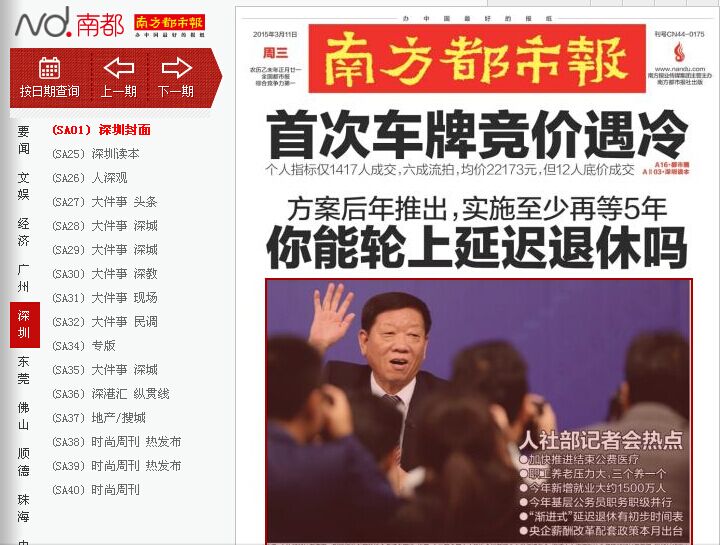 南方都市报“两会连线”——全国政协委员涂辉龙建议给农民工 2015-03-11