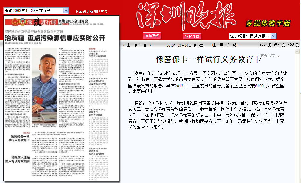 “两会声音”全国政协委员、深圳海雅集团董事长涂辉龙:像医 2015-03-04